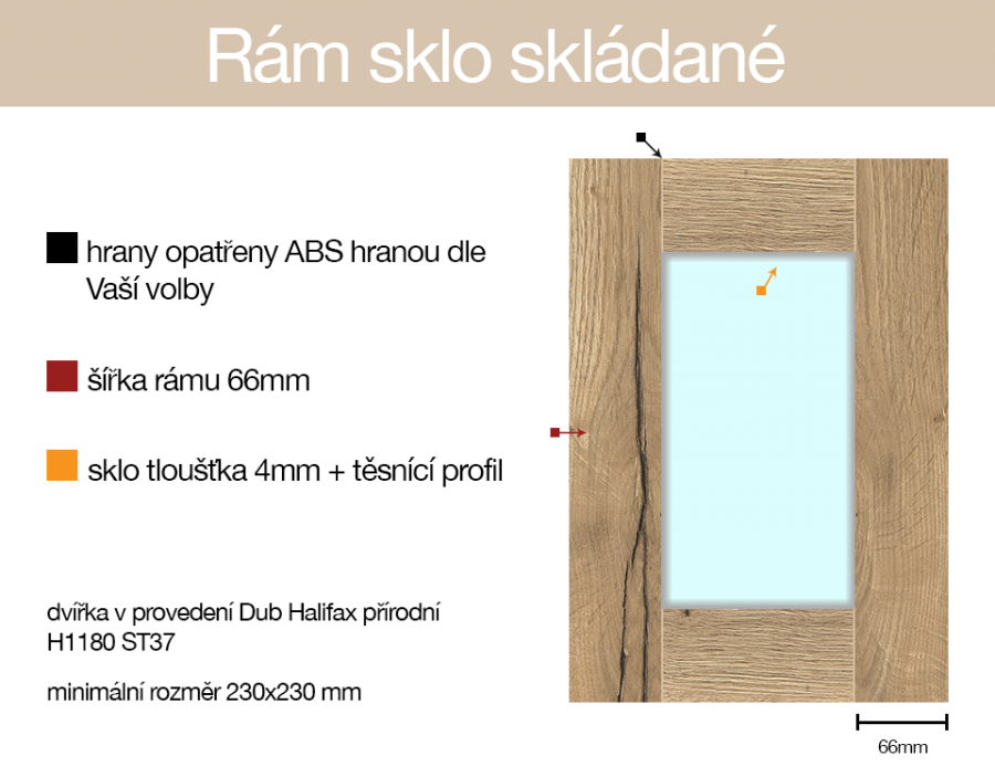 - SS - dvířka/dílce v provedení rám sklo skládané (níže ilustrační fotografie)